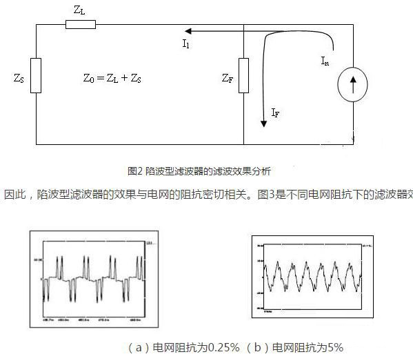 而流入濾波器的諧波電流的大小取決于電網阻抗與濾波器的阻抗ZF的比值,這個比值越大,濾波器的濾波效果越好。